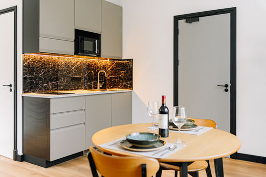 Elke studio is uitgerust met een eigen keuken – ideaal voor ontbijt of een lichte maaltijd tussendoor.